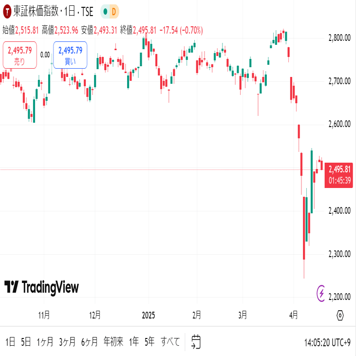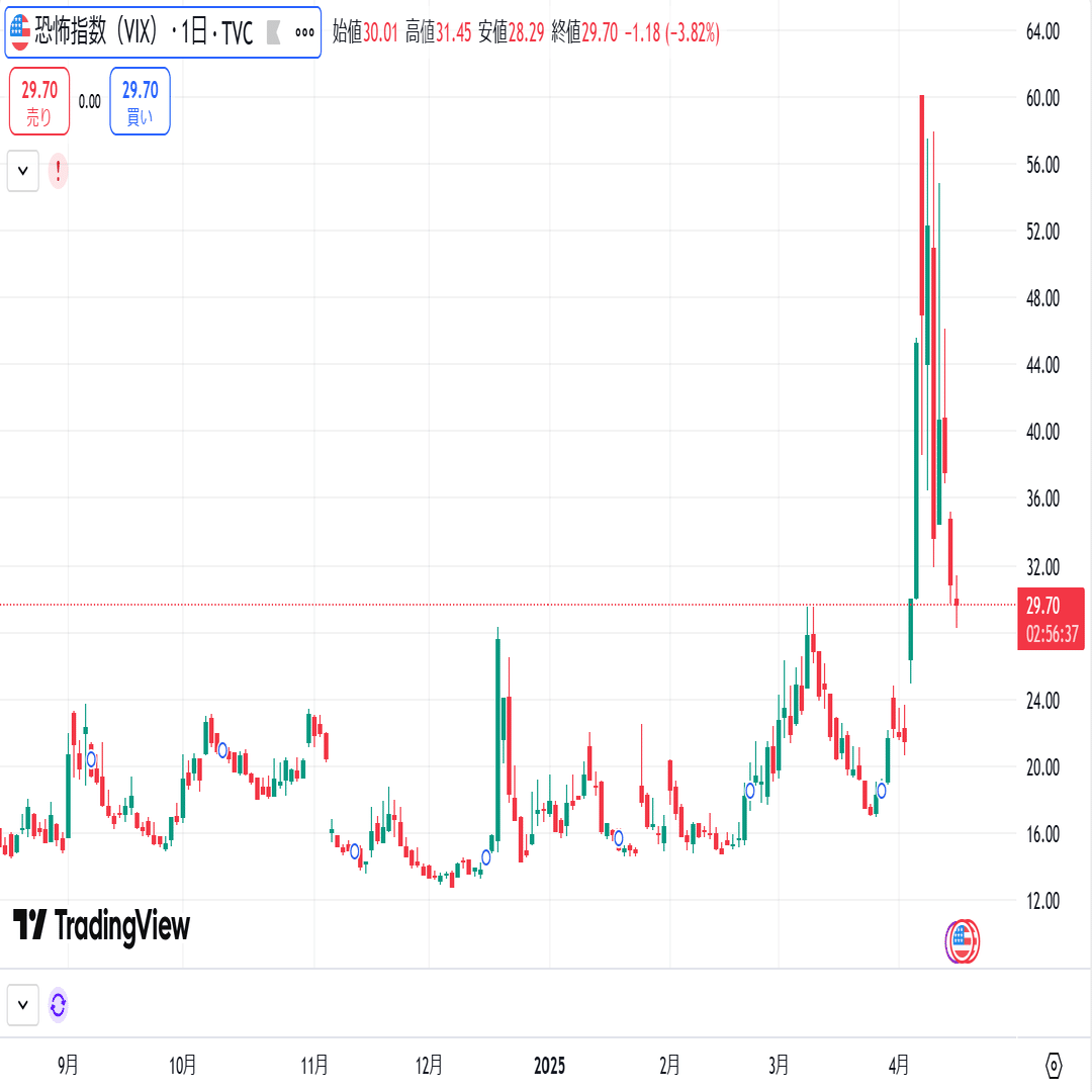 VIXのこの推移は、トランプ大統領が発表した相互関税による影響です。