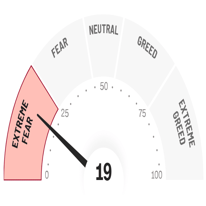 Fear and Greed Indexは19とEXTREAM FEARに振れています。VIXと併せて見てみると、市場心理は強い恐怖を感じている状態であると分かります。