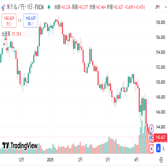 一ドルは142.627円台をつけ、2024年9月30日以来の円高水準に到達しました。